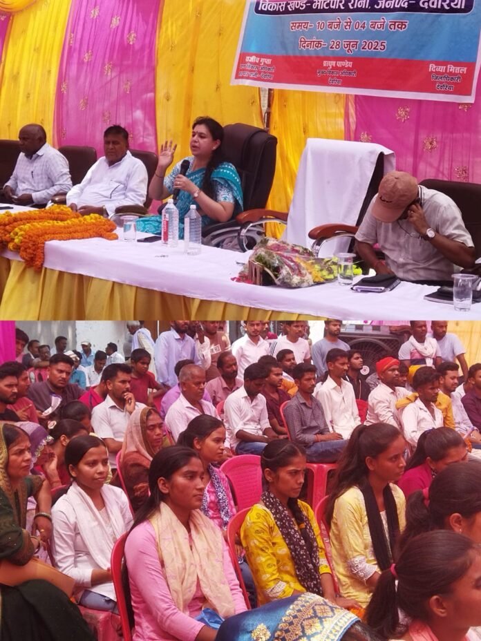 देवरिया,,जिलाधिकारी दिव्या मित्तल के दिशा-निर्देशन एवं प्रेरणा से आज भाटपार रानी ब्लॉक परिसर में युवाओं के लिए सामाजिक जागरूकता प्रशिक्षण शिविर का आयोजन किया गया। इन शिविरों का उद्देश्य युवाओं को सरकार की जनकल्याणकारी योजनाओं की गहन जानकारी प्रदान करना एवं उन्हें गांव-गांव तक योजनाओं के प्रचार-प्रसार के लिए प्रेरित करना था।