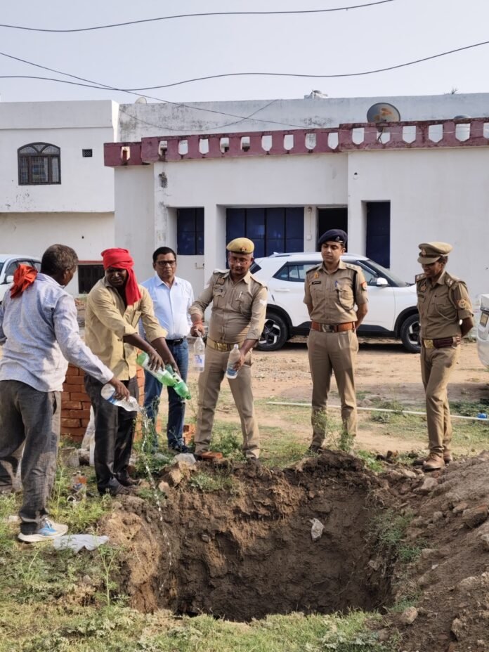 औरैया। शासन की मंशा के अनुरूप थानों को अत्याधिक स्वच्छ व सुविधाजनक बनाये जाने के लिए चलाये जा रहे अभियान के क्रम में थाना कुदरकोट में वर्ष 2023 व वर्ष 2024 के आबकारी अधिनियम से संबंधित जमा माल मुकदमाती के निस्तारण कराये जाने के संबन्ध में आज मा0 न्यायालय से प्राप्त अनुमति के आधार पर पुलिस अधीक्षक अभिजित आर. शंकर व अपर पुलिस अधीक्षक औरैया आलोक मिश्रा के निर्देशन में क्षेत्राधिकारी बिधूना पृथुयशश्य पुनीत मिश्रा व नायब तहसीलदार हरकिशोर व थानाध्यक्ष कुदरकोट नीरज शर्मा आदि की उपस्थिति में थाना कुदरकोट के मालखाने में जमा माल मुकदमाती अवैध,जब्त नाजयज शराब को गड्ढा खुदवाकर नष्ट कराया गया। नष्ट करायी गयी कुल 18 मुकदमों से संबंधित अवैध नाजायज शराब का विवरण व औसत कीमत-मात्रा-115 लीटर एवं अनुमानित कीमत-50 हजार 400 रुपए बताई जाती हैं