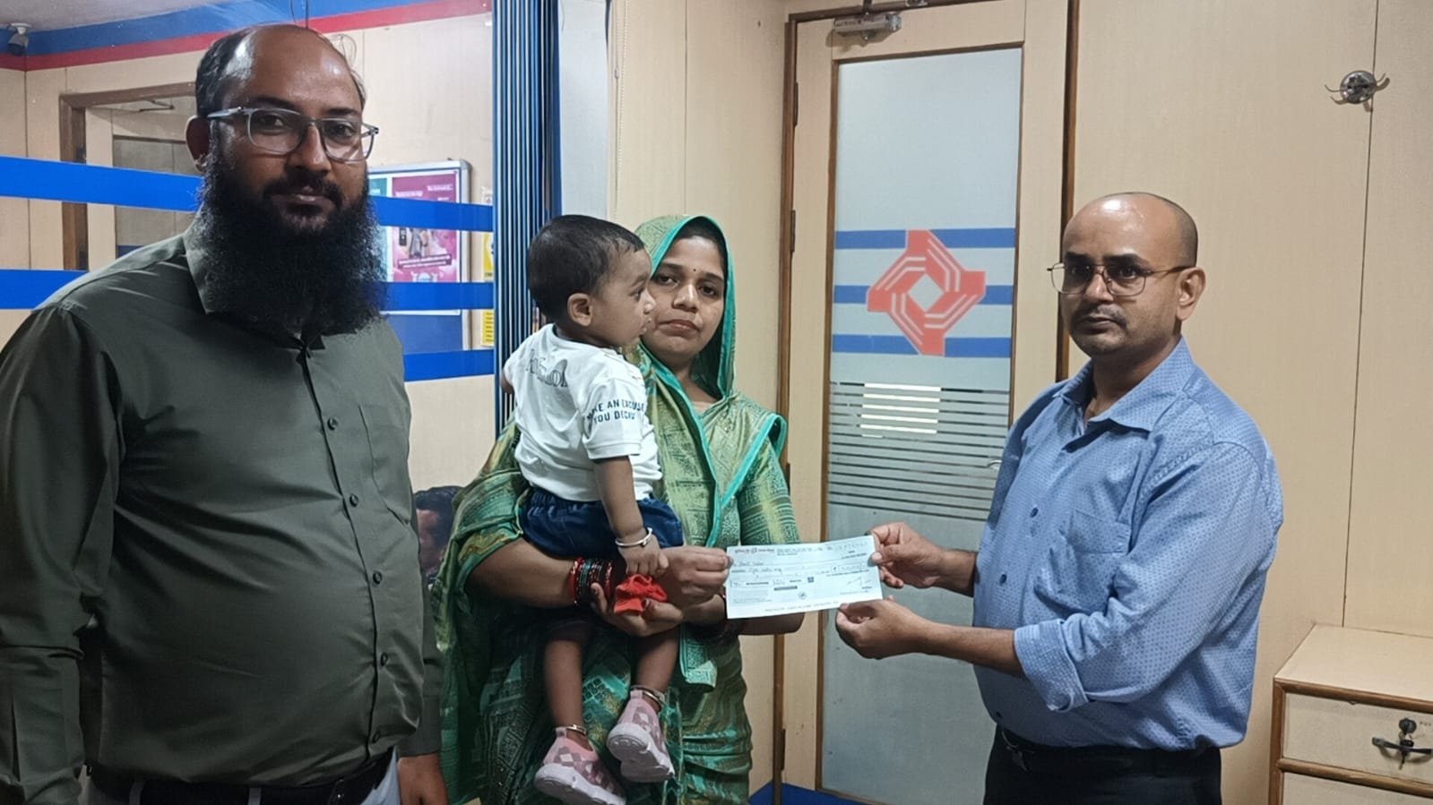 औरैया सेंट्रल बैंक ऑफ इंडिया के क्षेत्रीय कार्यालय में साइनप्स सॉल्यूशंस प्र लि में जिला समन्वयक के पद पर कार्यरत स्वर्गीय गोविंद यादव की पत्नी प्रीति यादव निवासी औरैया को क्षेत्रीय प्रबंधक एम एस आलम ने साइनप्स सॉल्यूशंस प्रा लि दिल्ली के द्वारा भेजी गई रु 8 लाख की सहायता राशि की चेक सौंपी गई । सहायता राशि पाकर प्रीति यादव द्वारा कंपनी के एम डी शुभाशीष पटनायक, क्षे. प्र. एम एस आलम, स्टेट हेड मु आशिफ का आभार व्यक्त किया गया । बताते चले कि सेंट्रल बैंक ऑफ इंडिया के FI PROJECT में जिला समन्वयक के पद पर कार्यरत गोविंद यादव का विगत दिनों हार्ट अटैक आ जाने सी निधन हो गया था । उनके निधन से परिवार पर दुखों का पहाड़ टूट पड़ा था । ऐसे में परिवार की आर्थिक स्तर पर मदद करने का बीड़ा साइनप्स सॉल्यूशंस प्रा लि ने उठाया । जिसके क्रम में आज शुक्रवार को रु 8 लाख की सहायता राशि की चेक गोविंद यादव की पत्नी को सौंपी गई । इस मौके पर क्षेत्रीय प्रबंधक एम एस आलम, SSPL के स्टेट हेड मु आशिफ, DC अमित कुमार, अरमान व विमल कुमार आदि लोग मौजूद रहे।