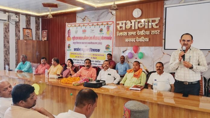 राष्ट्रीय ग्राम स्वराज अभियान योजनान्तर्गत सतत विकास लक्ष्य का स्थानीयकरण एवं कार्बन न्यूट्रल विषयक ग्राम प्रधान, सचिव एवं पंचायत सहायक का एक दिवसीय प्रशिक्षण कार्यक्रम का आयोजन विकास खण्ड सभागार देवरिया मे किया गया।