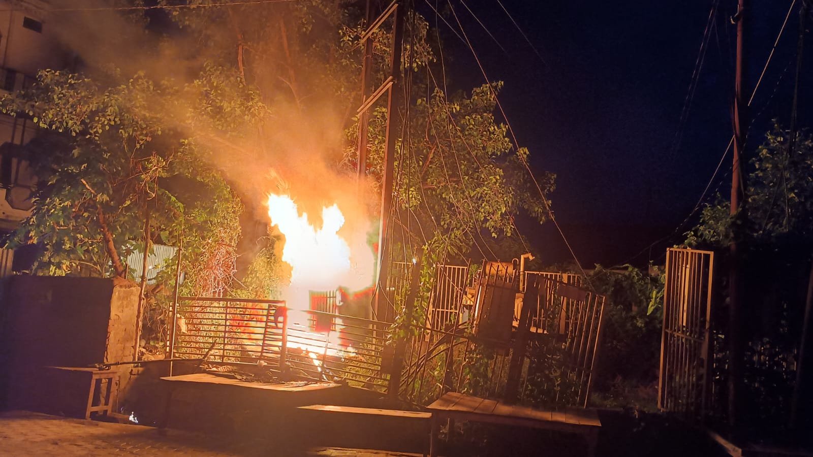 शॉर्ट सर्किट से ट्रांसफॉर्म में आग लगने से धू धू !
