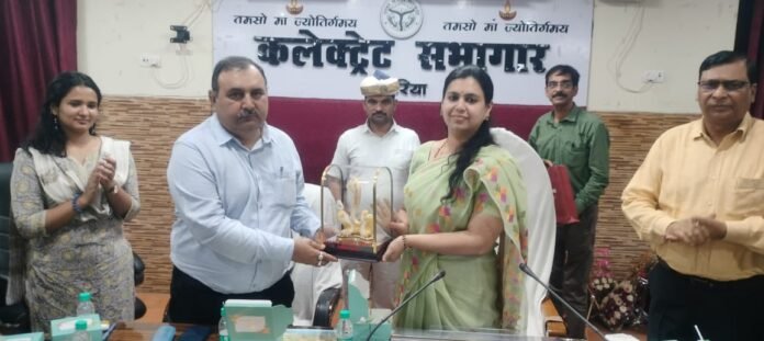 देवरिया,,अधिवर्षता आयु पूर्ण कर सेवानिवृत्त हुए अपर जिलाधिकारी (वित्त एवं राजस्व) श्री अरुण कुमार राय के सम्मान में कलेक्ट्रेट सभागार में एक भव्य विदाई एवं सम्मान समारोह का आयोजन किया गया। समारोह में उपस्थित समस्त अधिकारियों एवं कर्मचारियों ने श्री राय को भावभीनी विदाई दी तथा उनके सुखद, स्वस्थ एवं सफल भविष्य की कामना की।